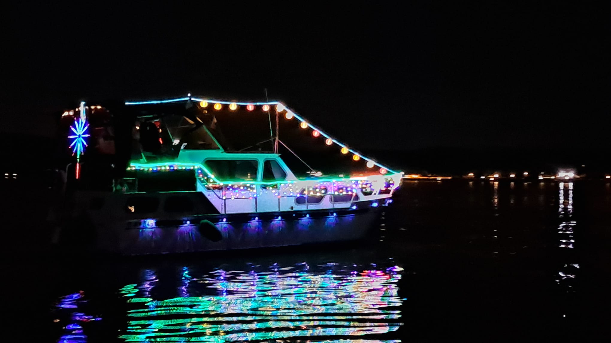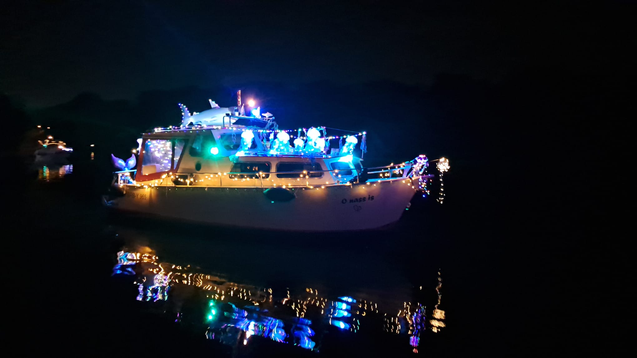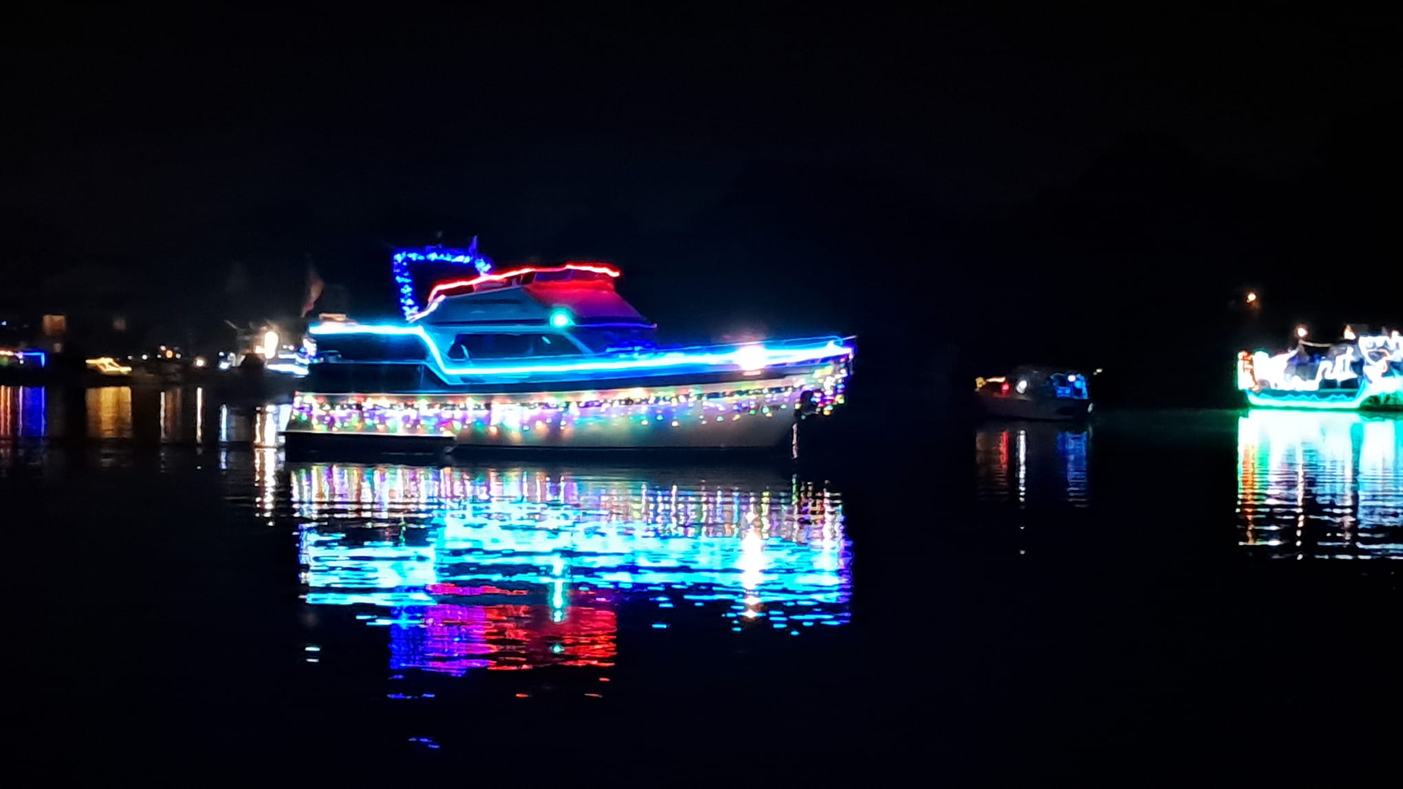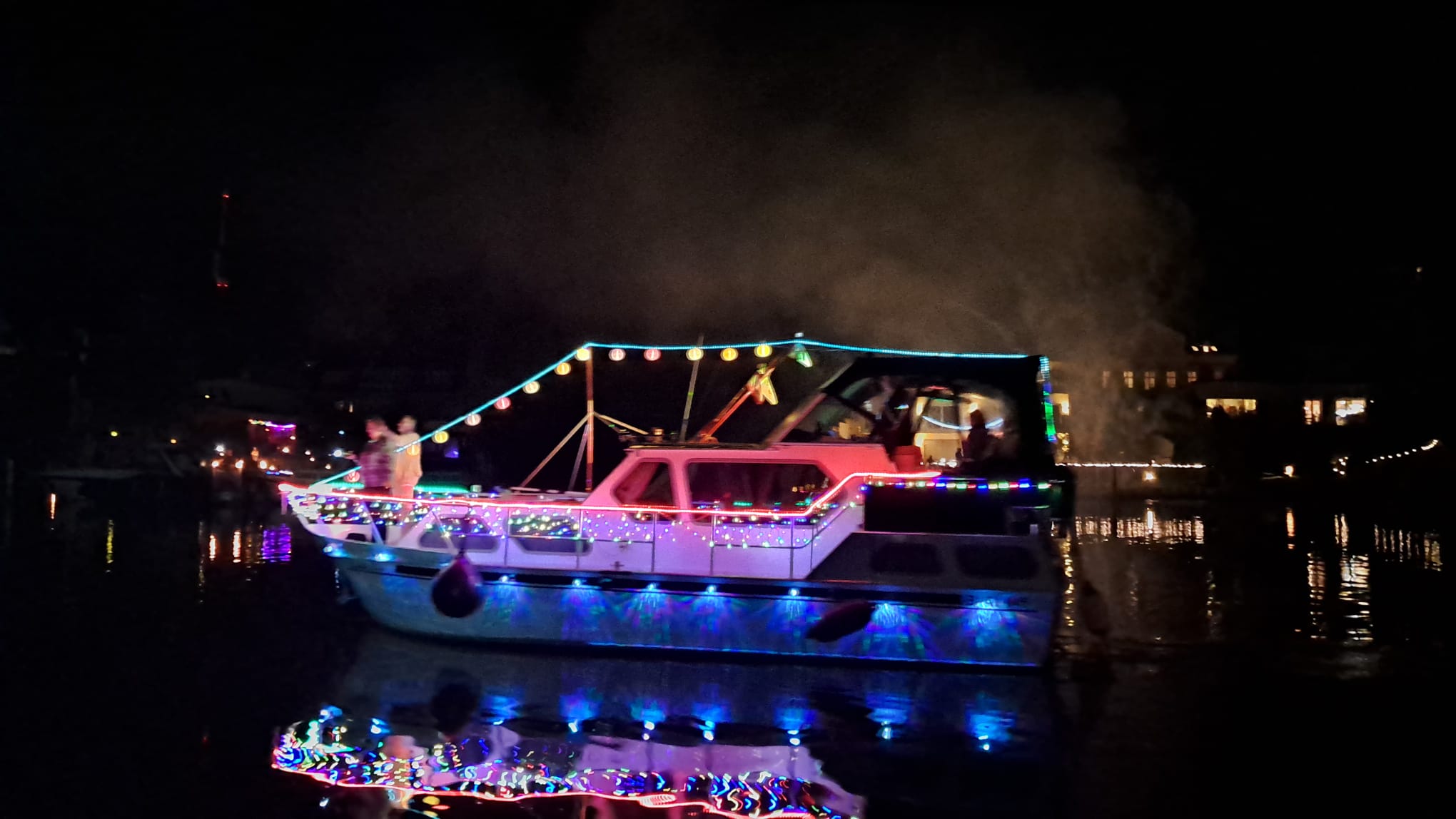 Die traditionelle Lichterfahrt mit beleuchteten Booten in tiefschwarzer Nacht!