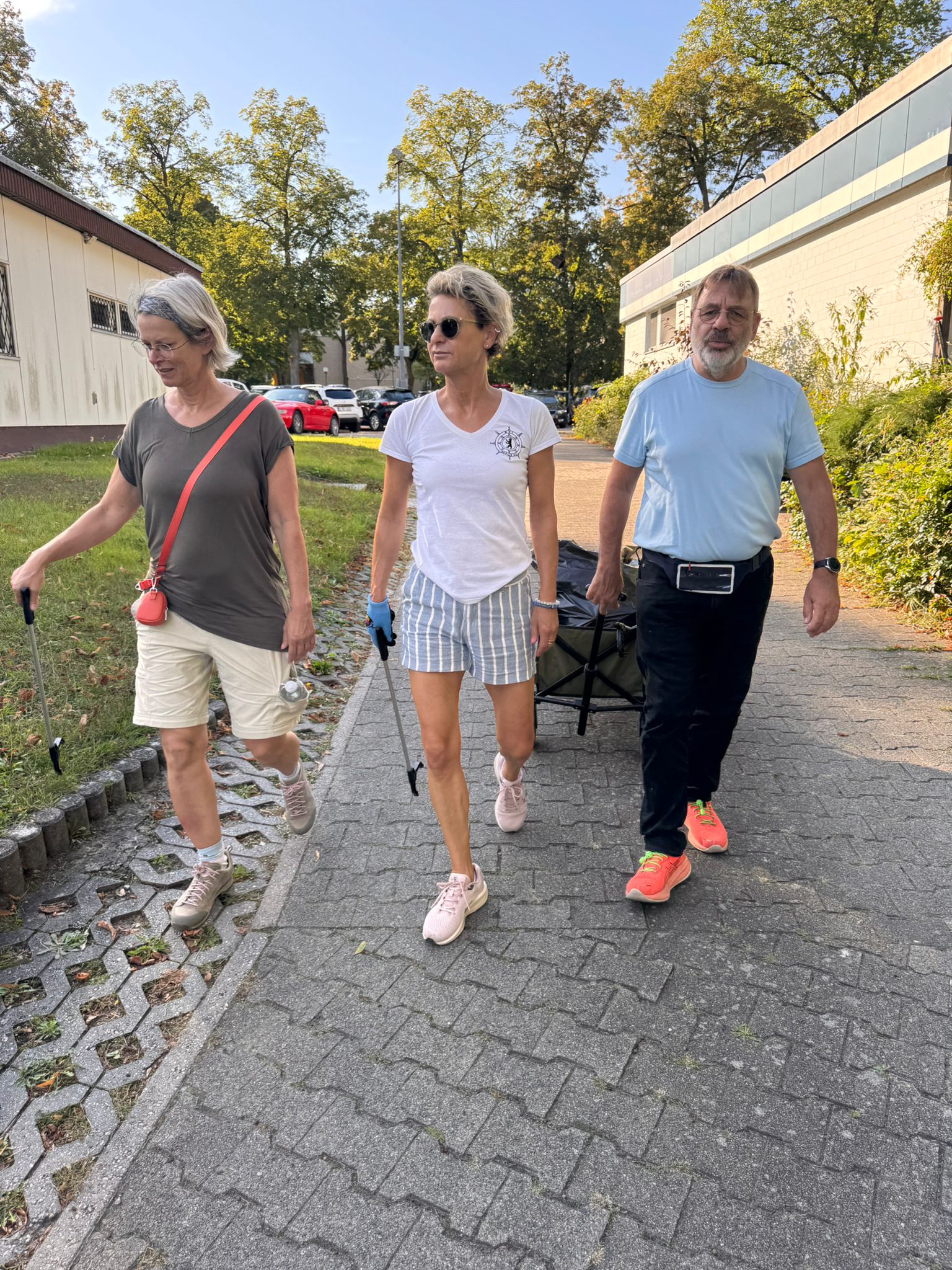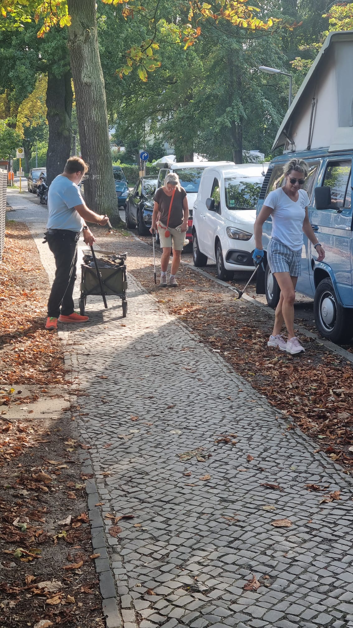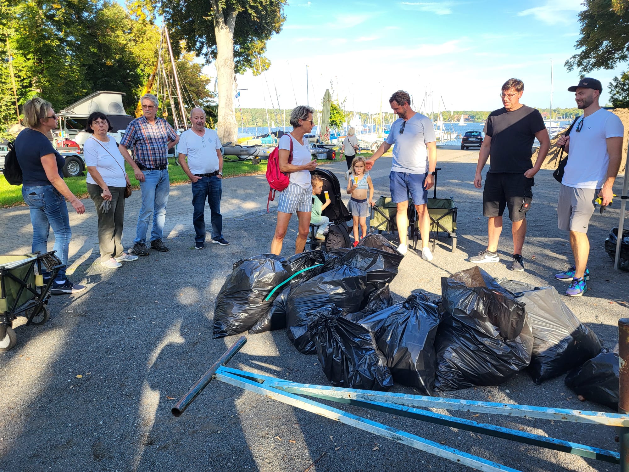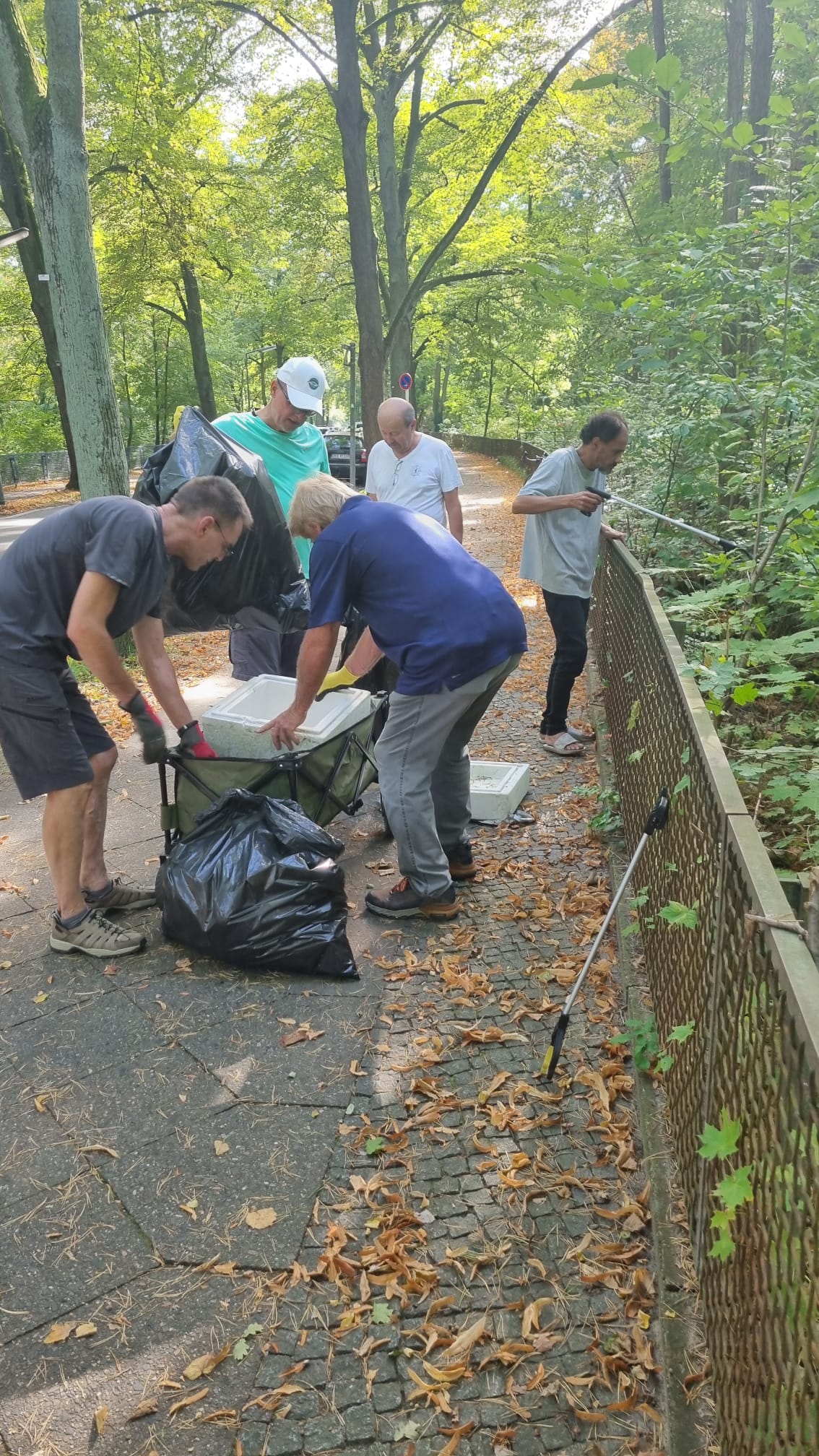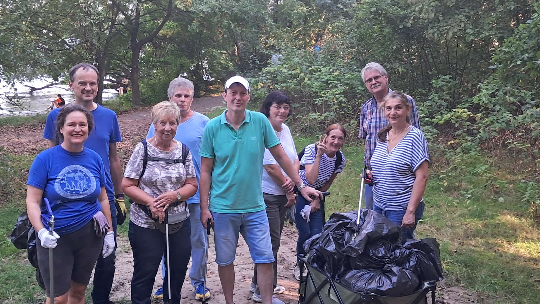 Jede Gruppe wurde mit Müllgreifern, Handschuhen, Müllsäcken und Bollerwagen ausgestattet. Nach einer kurzen Einweisung ging es in den Düppeler Forst, wo insbesondere die Ufer nahe der Badestelle aufgeräumt wurden. Zusätzlich ging es durch den Forst rund um das Clubgelände.